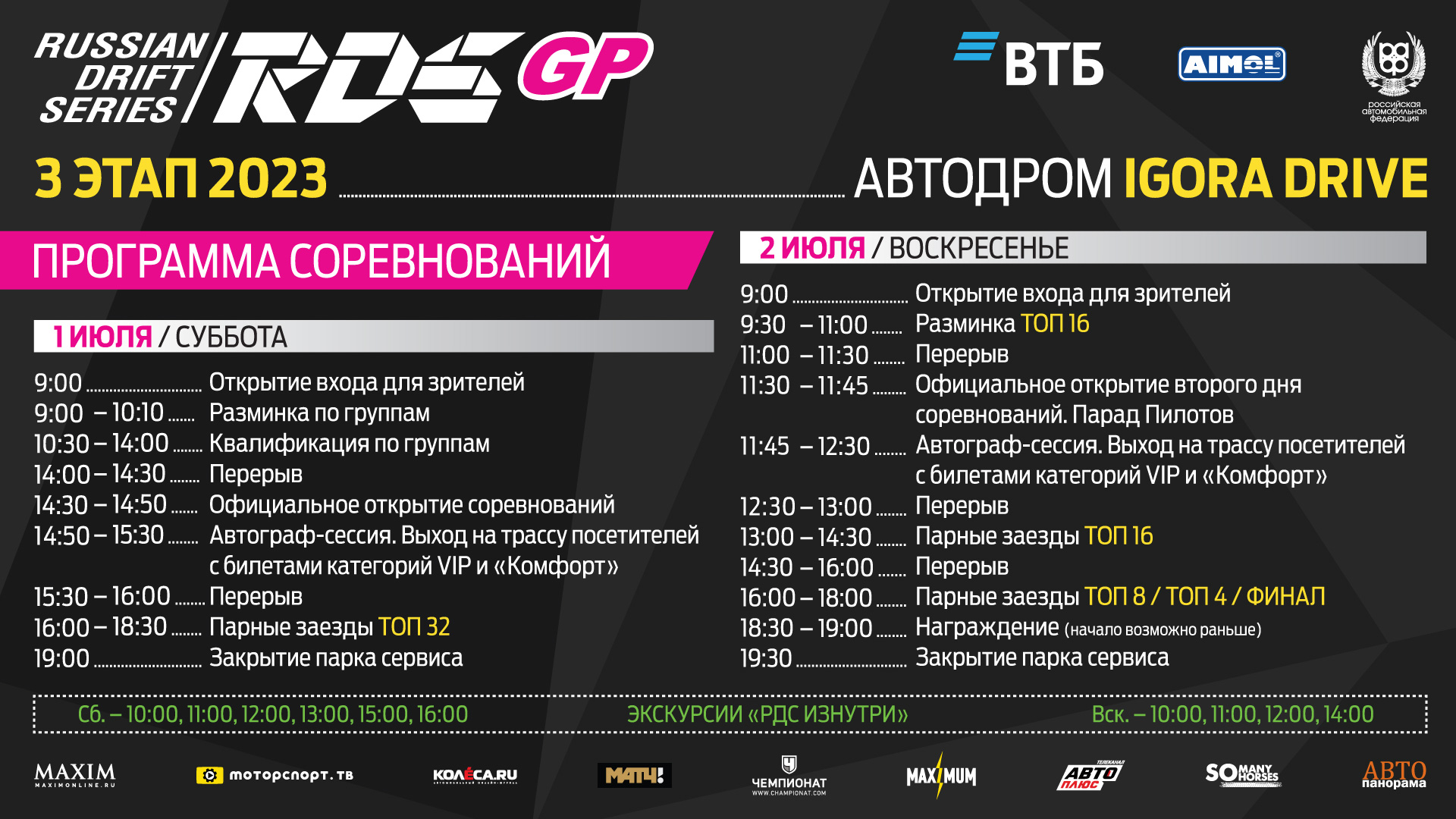 Расписание 3-го этапа RDS GP 2023 на трассе «Игора Драйв»: