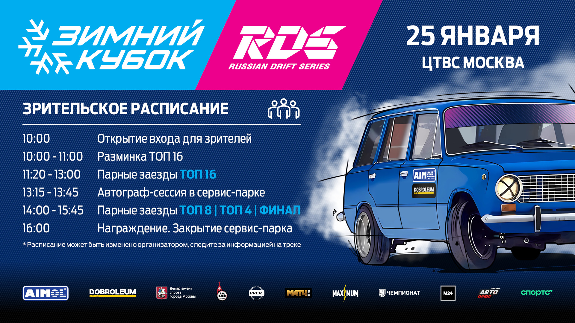 Зимний кубок РДС по дрифту пройдет 24 и 25 января на территории Центра технических видов спорта «Москва» в Печатниках.